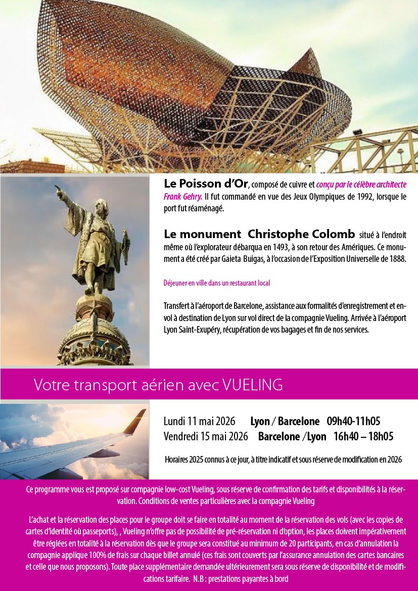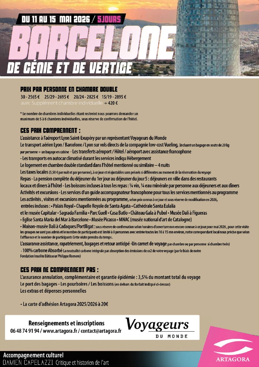 Je vous transmets ci-dessous le lien d’inscription pour le voyage à Barcelone du 11 au 15 mai 2026.