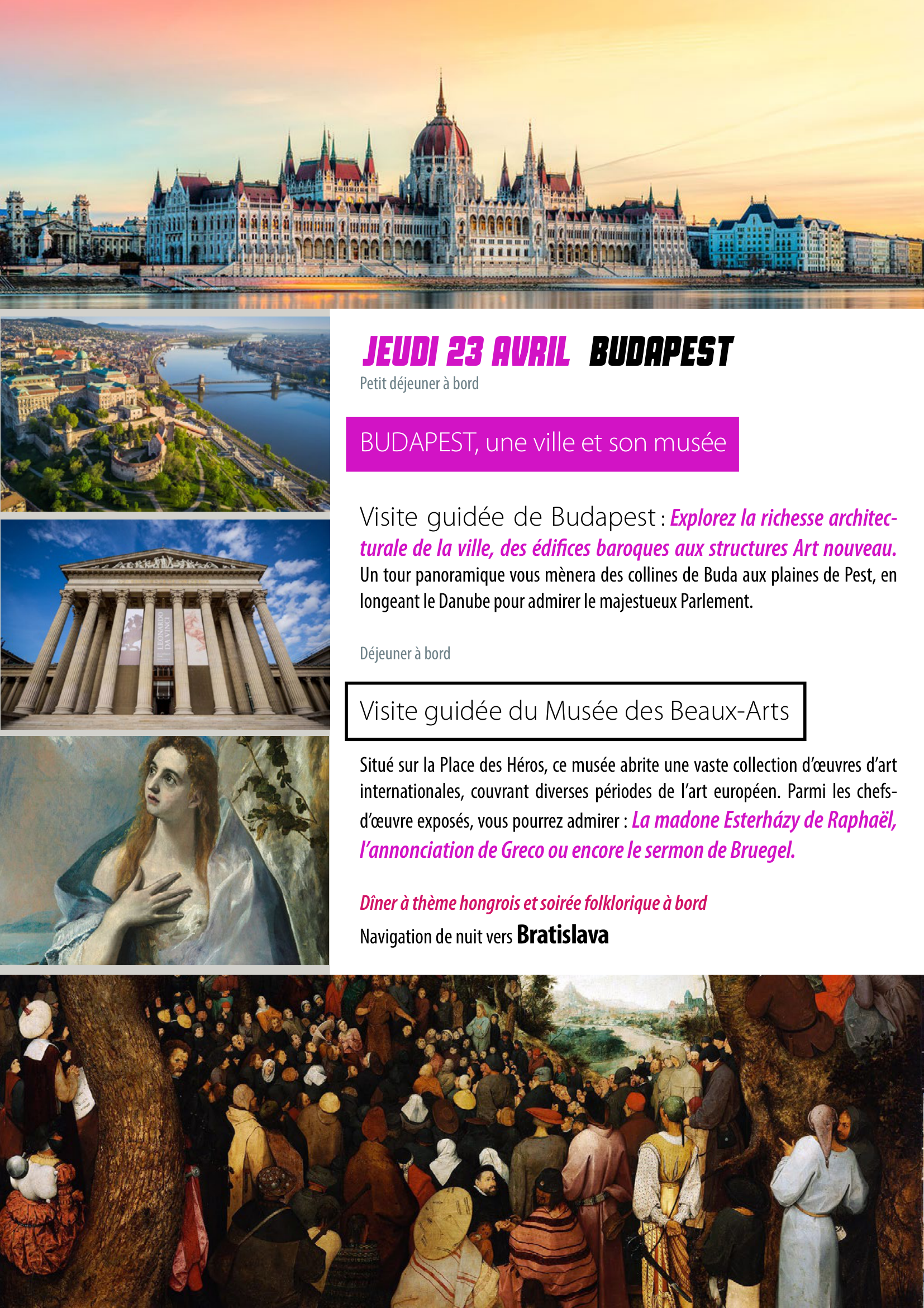 Assurances : comme habituellement sur tous nos voyages de groupes l’assurance assistance-rapatriement frais médicaux est incluse d’office. L’assurance complémentaire/annulation est en option (3,5% du montant du voyage).